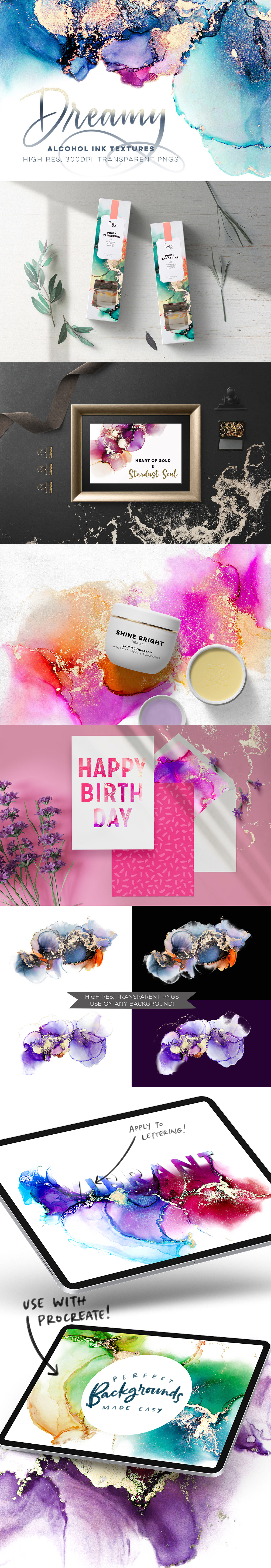 Gain increased views on your physical and digital products, social media posts and online graphics with Dreamy Ink Textures!