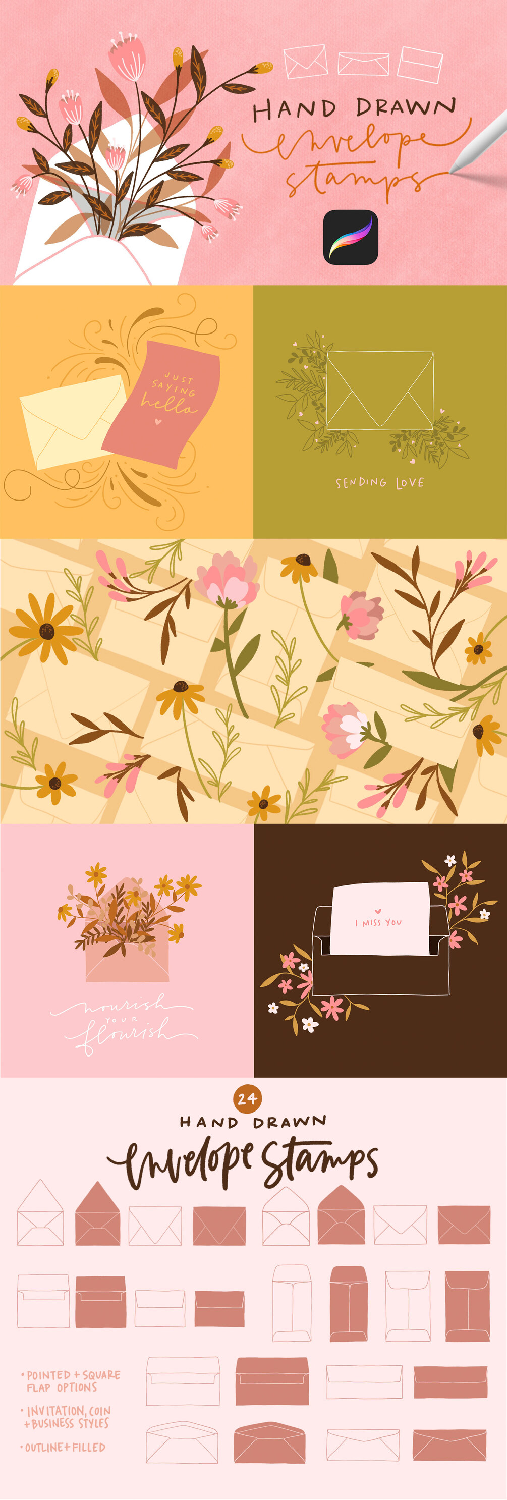 Hand Drawn Envelopes Procreate Brush Set [Extended License]