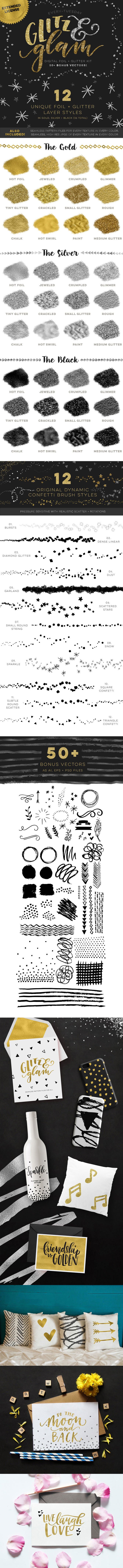 - 12 unique foil + glitter layer styles in gold, silver and black (36 total)