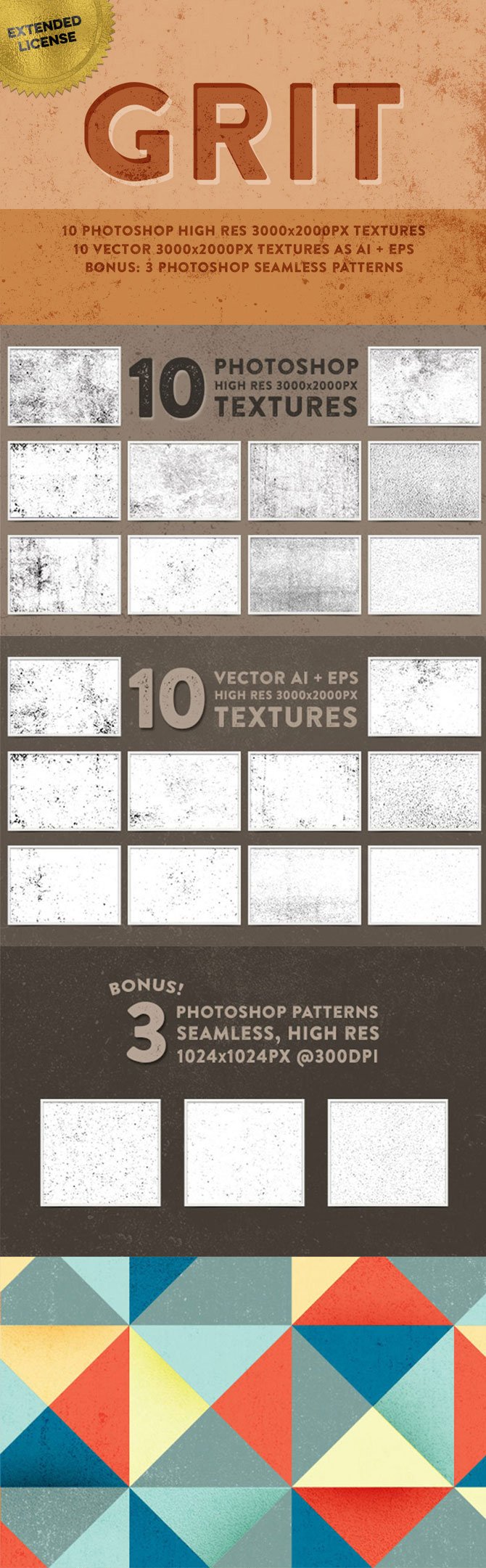 - 10 ai + eps vector textures for versions of Illustrator, CS3 or newer (@300dpi)