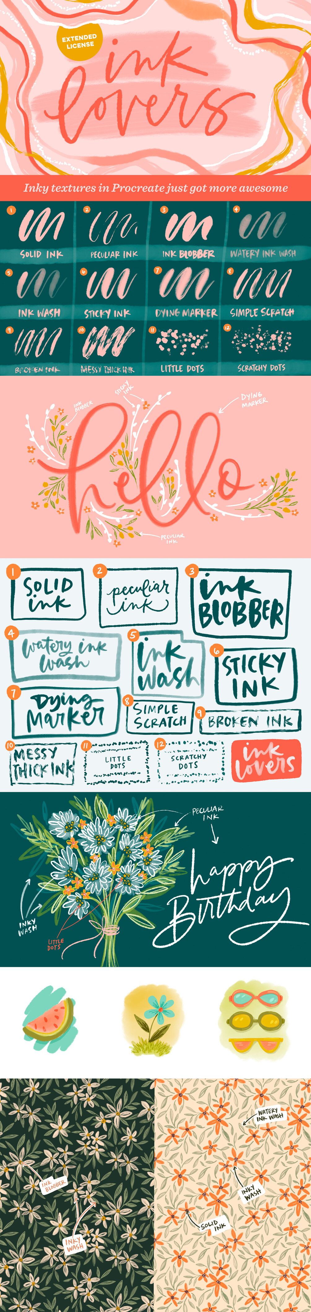 This is the Extended License for the Ink Lovers Procreate Brush Set and grants you (the purchaser) ongoing permission to use the Item to create end products that are intended to be sold or used for business purposes. For full Extended License rights and prohibitions, please visit https://every-tuesday.com/license/